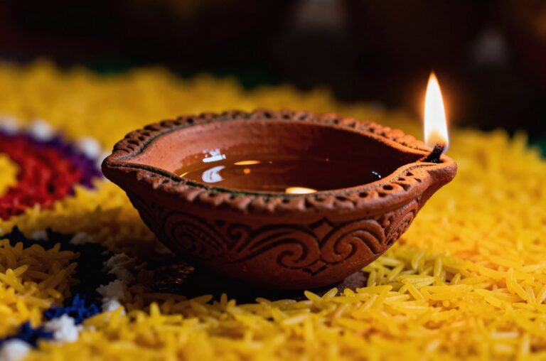 Each Diya consists of a clay lamp, batti, ghee as fuel, and camphor.